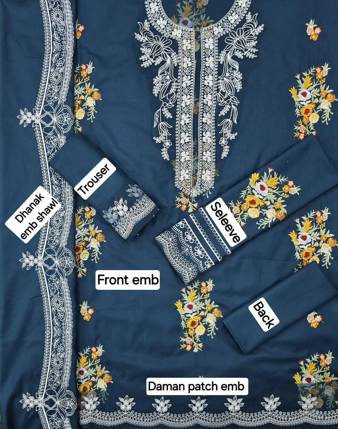 WINTER COLLECTION BRAND:CRIMSON FABRIC DHANAK DHANAK EMB 3pc WITH DHANAK EMB DUPPATA FRONT FULL EMBROIDERED Daman,Neck patch embroidery SLEEVES FULL EMBROIDERED DYED TROUSER DHANAK EMBROIDERY DUPPATA Package included same as open picture Fabric and color grantee Neat embroidery grantee